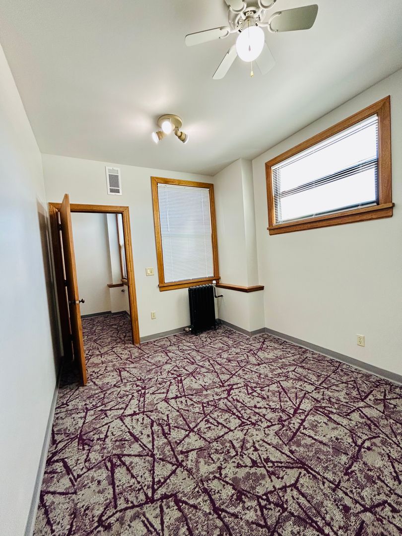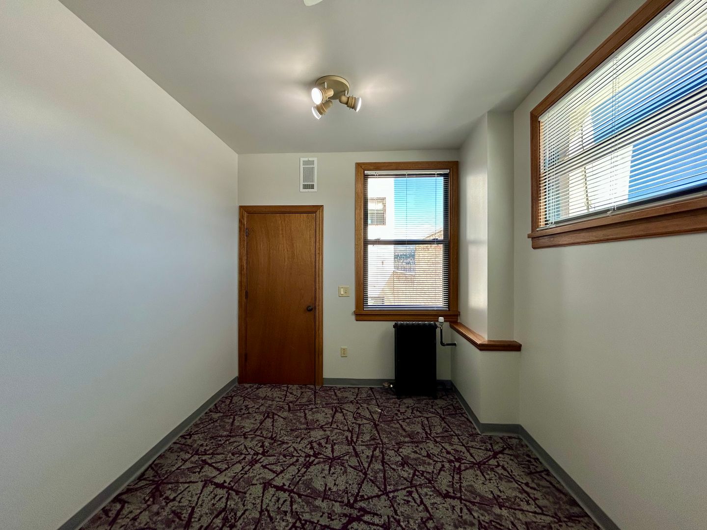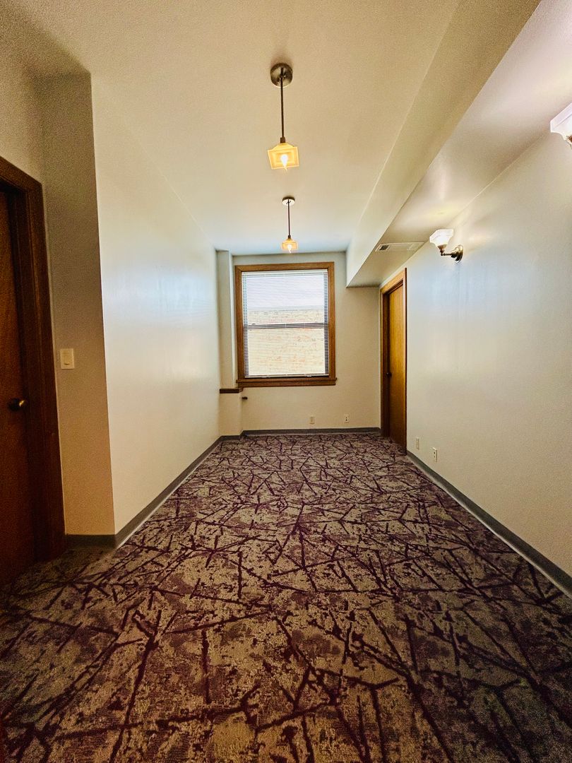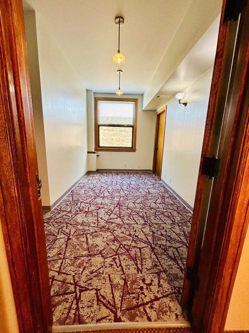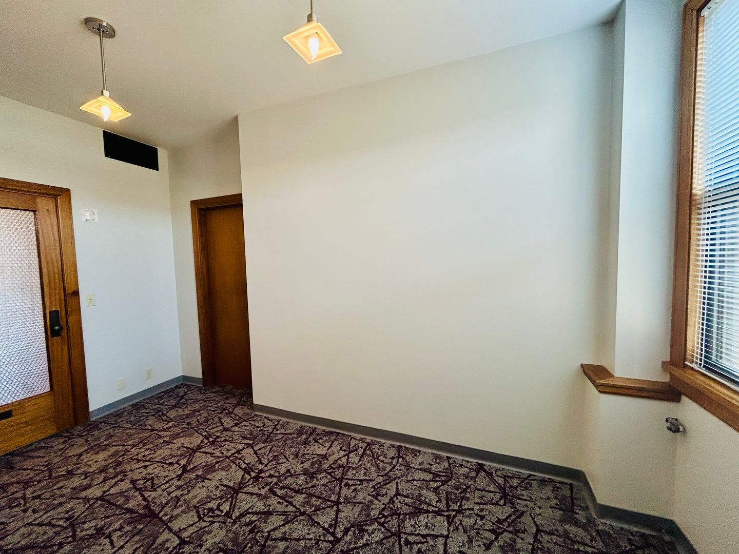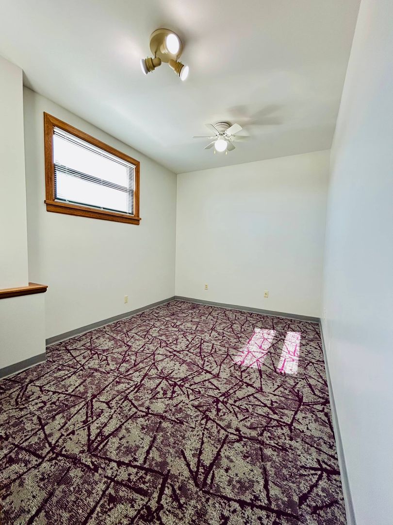 This space recently received new paint, carpet and window coverings.